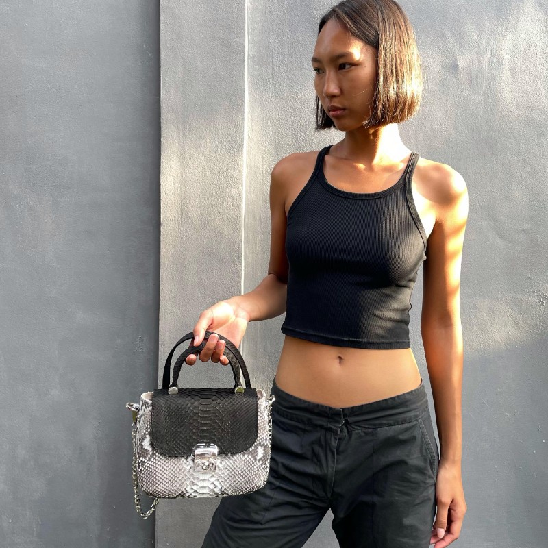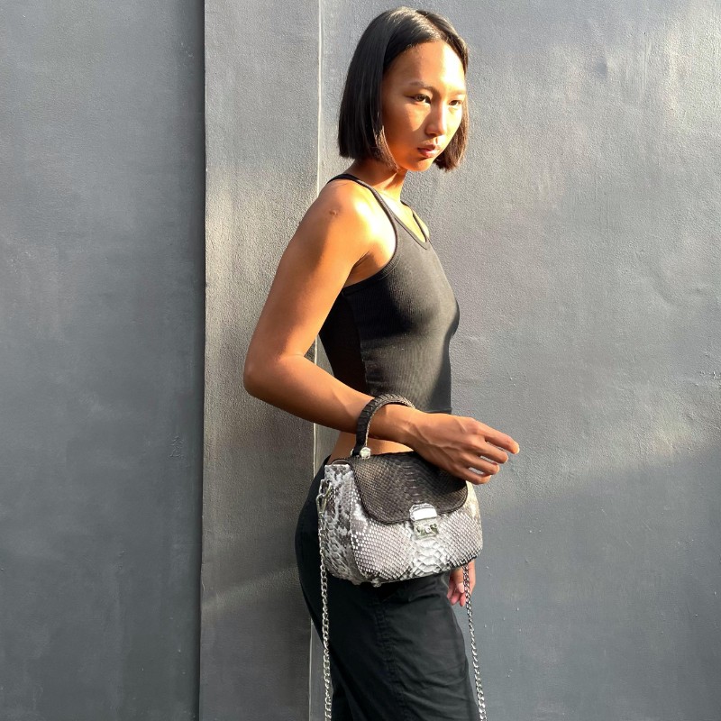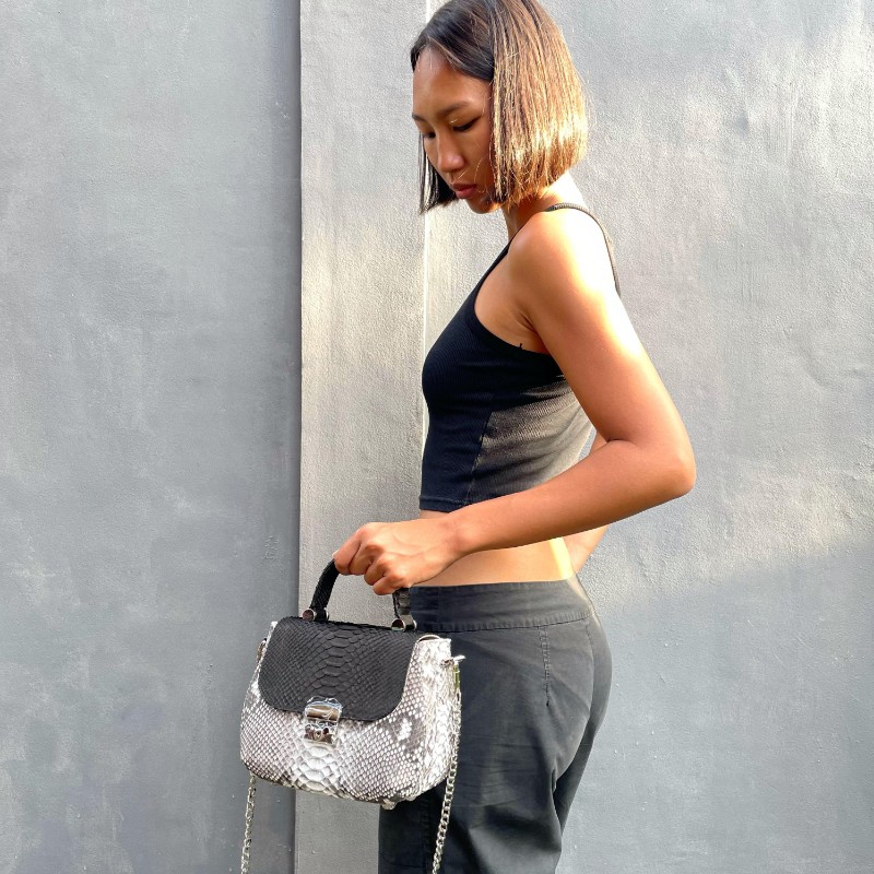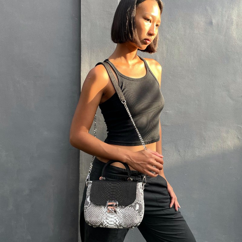 with chain strap + leather on shoulder pad