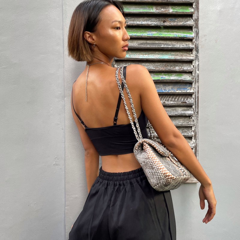 Size: 25x9x16Cm Accessories: Silver Long strap: Silver chain with leather insert