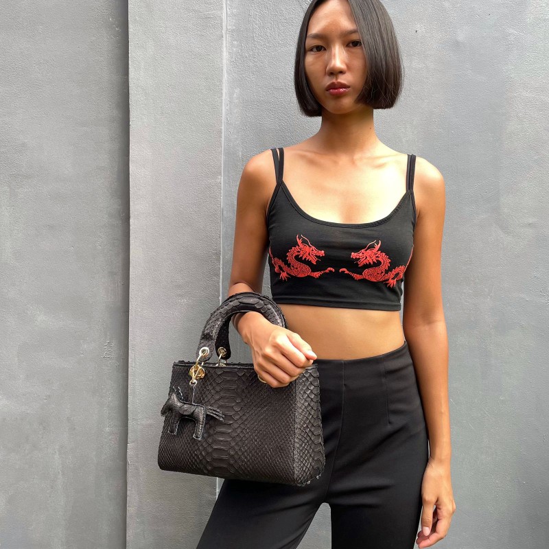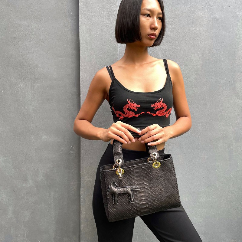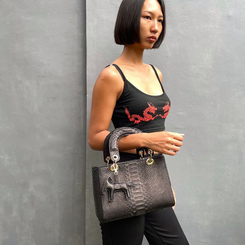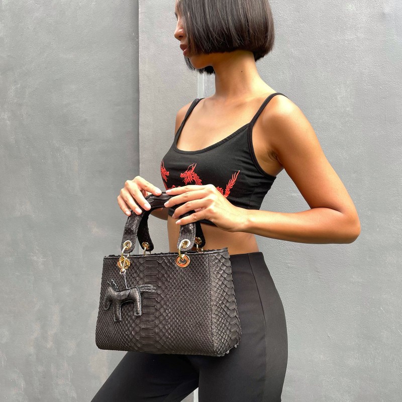 Material: Python Size: 26x13x18cm Accessories: Gold Long strap: Chain with leather shoulder pad