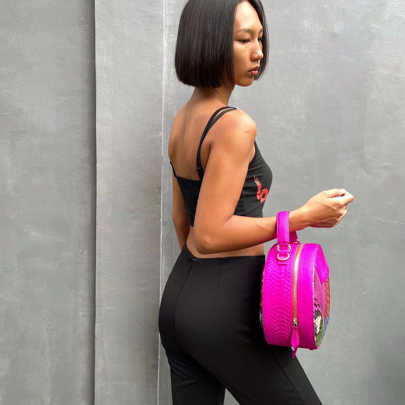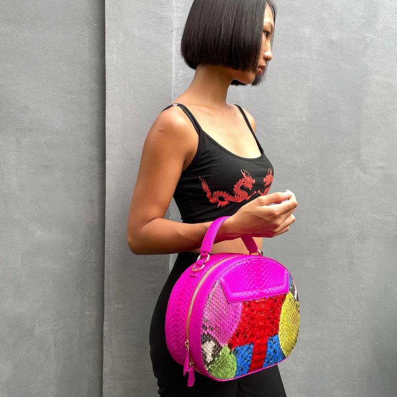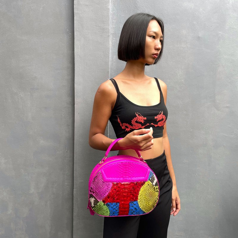 Material: Python Size: 28x10x21cm Accessories: Gold Long Strap: Yes Zipper closure