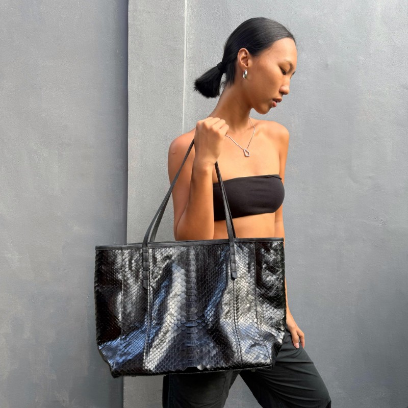 Material: Python/ Lambskin Combination Size: 34/43x17x36cm Zipper Closure