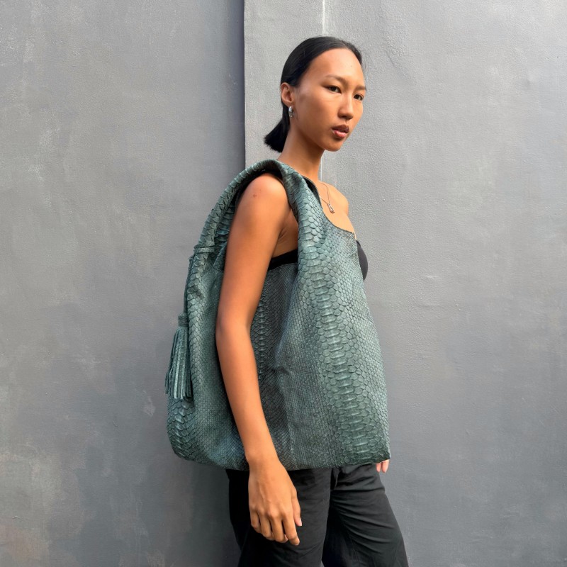 Material: Python/ Nobuck Size: 45x47cm Magnetic Closure