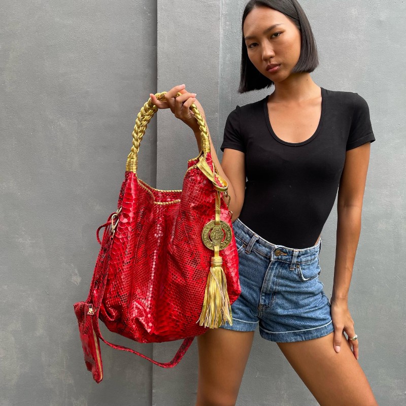 Material: python/ lambskin on handle Size: 50X15X35CM Accessories: rose gold Long strap: Yes Extra pouch