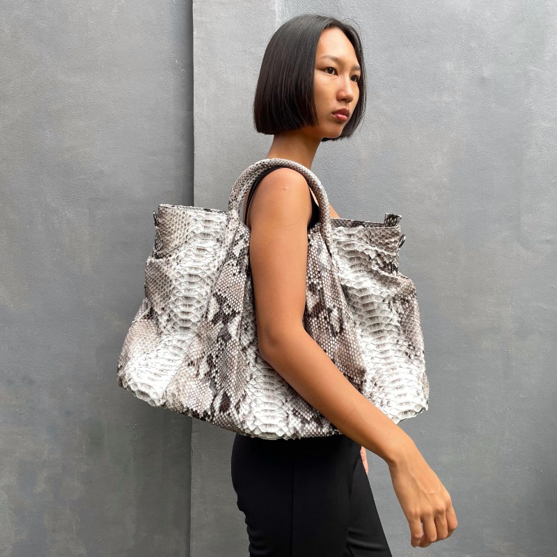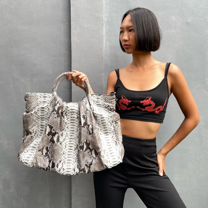 Material: Python Size: 52x13x38cm Accessories:black nickel Zipper Closure