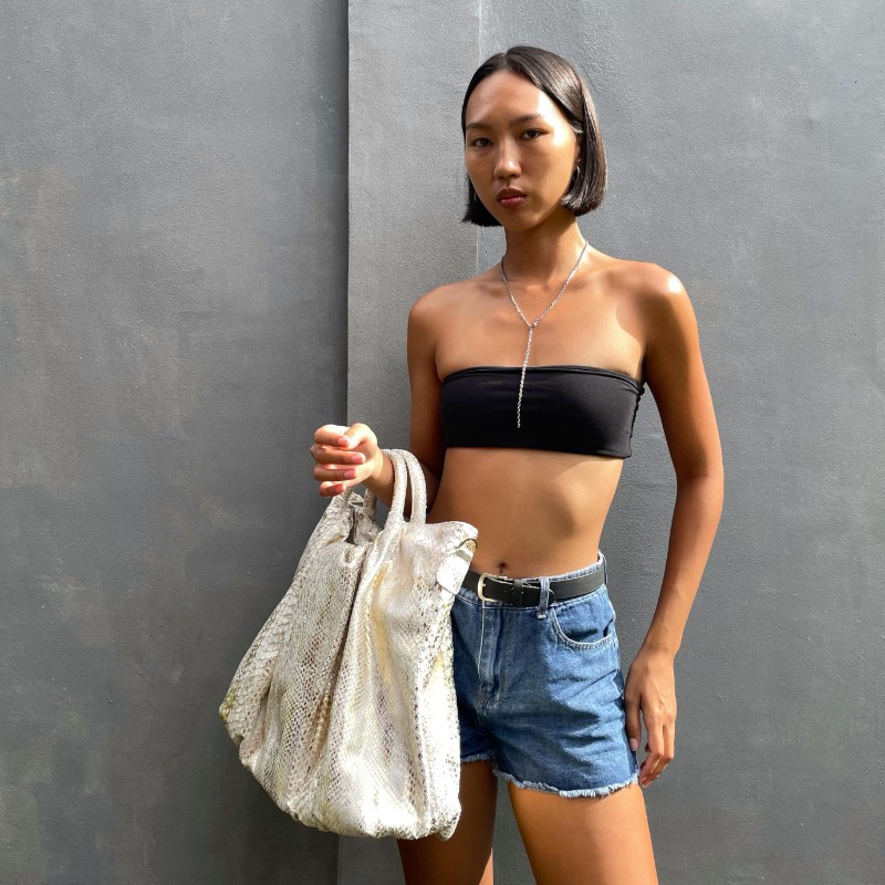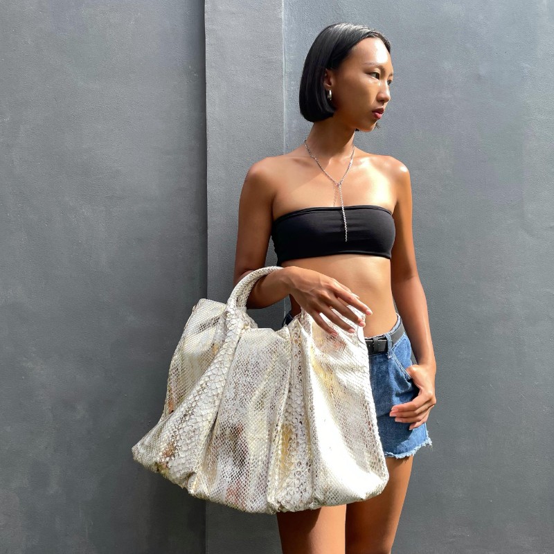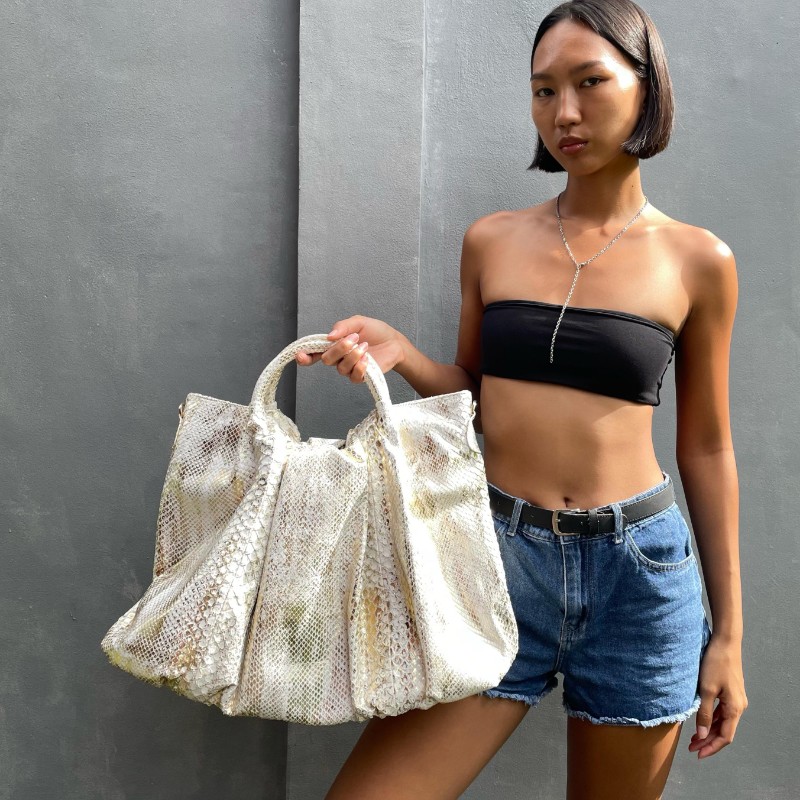 Material: Python Size: 52x13x38cm Accessories: Rose Gold Zipper Closure