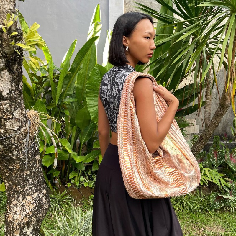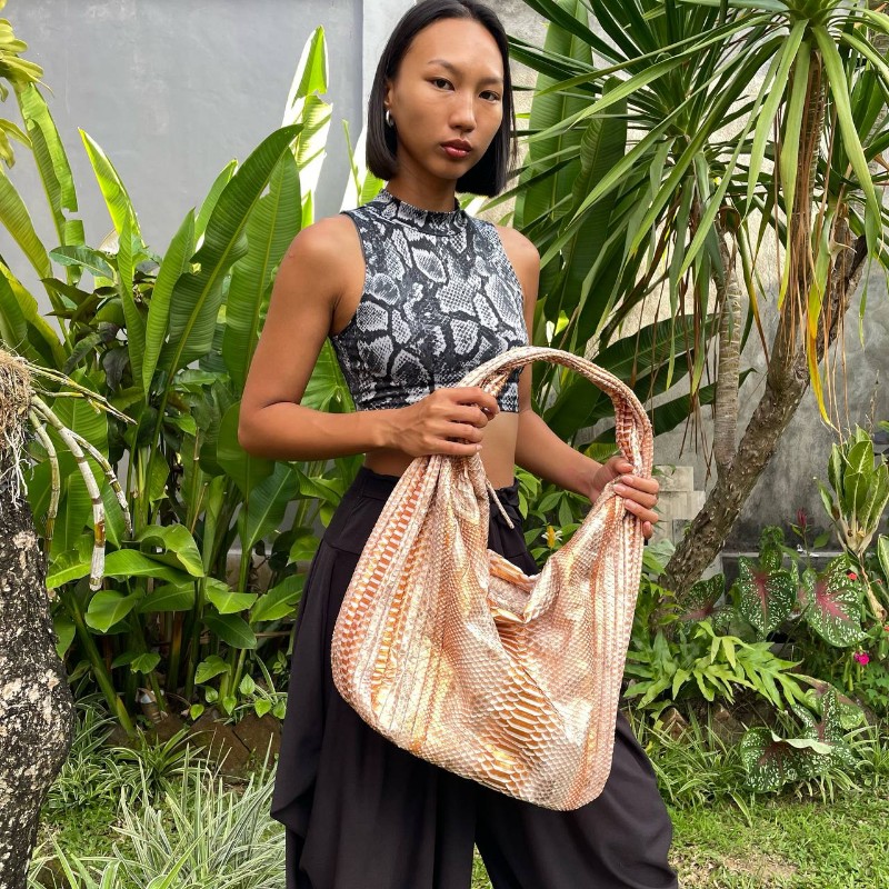 Material: Python with gold foil gradation Size: 48x15x34cm Zipper Closure