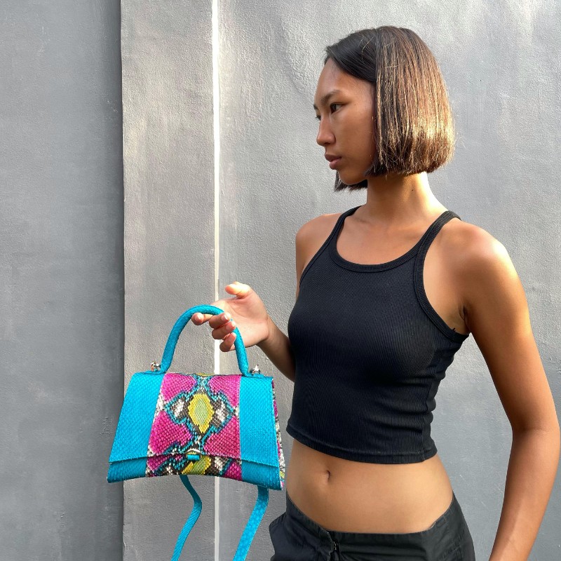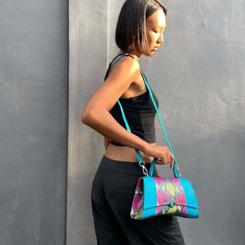 Material: Python Size: 23x10x15cm Accessories: Gold Long Strap: Yes Magnetic closure