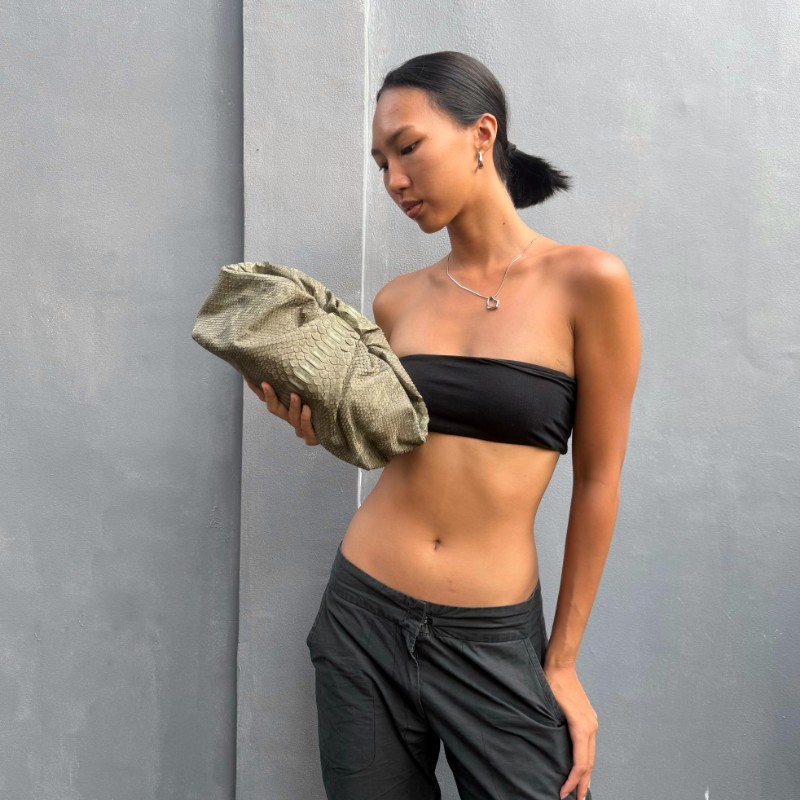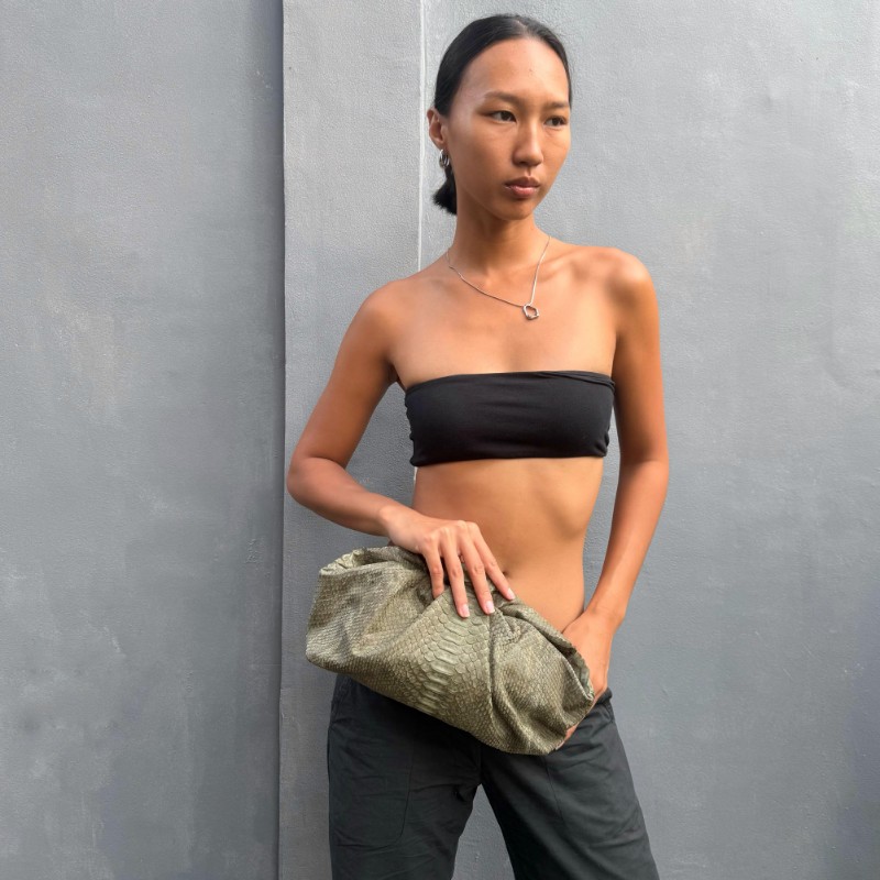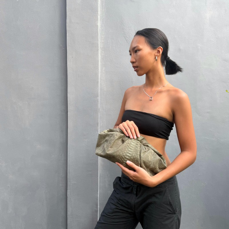 Material: Python/ glossy Size: 30x8x16cm Magnetic Closure Others: detachable long chain