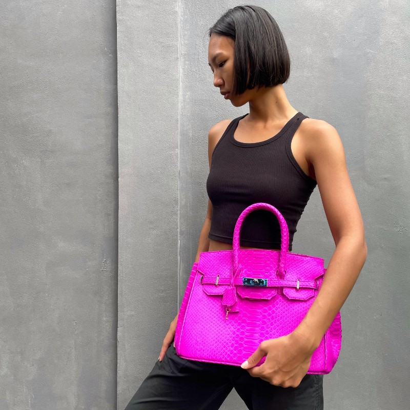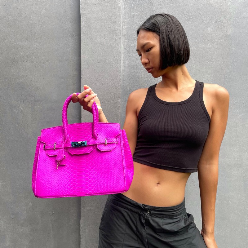 Material: Python Size: 30x15x25cm Accessories: Gold Long strap : Yes