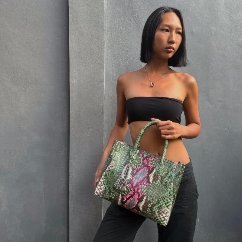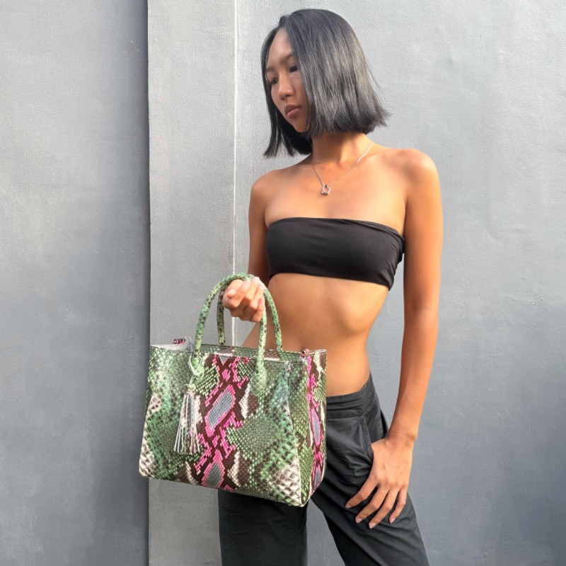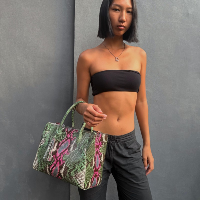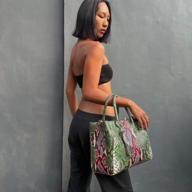 Material: Python/ Matte Size: 30x16x23cm Accessories: SILVER Long Strap: Yes